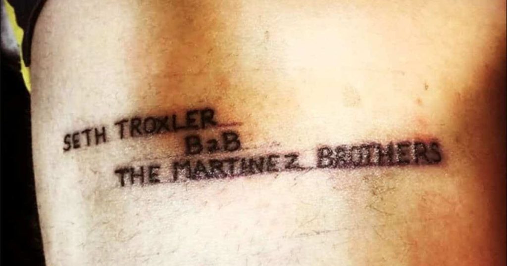 Antaño una señal imborrable de los que querían navegar a contracorriente, los tatuajes se han popularizado tanto que han perdido su significado actual. Algunas veces, la obsesión por cubrir el cuerpo de tinta ha dado diseños de dudoso gusto, y en esta galería, de temática electrónica, hay un poco de eso. La fachada de Berghain, el rostro de Papa Sven, una aguja marcando una vena…