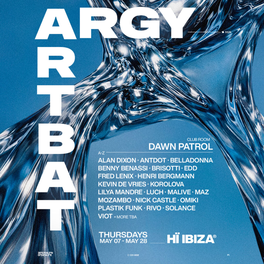 El próximo mes de mayo, Hï Ibiza impulsa uno de los momentos creativos más significativos de la temporada 2026. Durante los jueves 7, 14, 21 y 28 de mayo, la isla se convierte en el escenario de una narrativa artística concebida específicamente para Ibiza. En el Theatre, Argy & ARTBAT presentan una residencia única impulsada por dos de las fuerzas creativas más influyentes de la escena, mientras que el Club Room acoge el debut de Dawn Patrol, el proyecto colaborativo de los artistas brasileños Maz y Antdot.