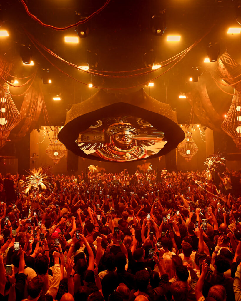 Black Coffee no solo transforma la pista: cada temporada invita a artistas plásticos, creadores audiovisuales y talentos de la escena artística africana para dar forma al universo iconográfico de la residencia. Juntos construyen un lenguaje visual que se reinventa cada año, conectando culturas y reforzando la dimensión artística de sus noches en Hï Ibiza, redefiniendo el diálogo entre música, arte y comunidad. Esta integración creativa ha convertido sus sábados en una experiencia que supera la idea tradicional de club y celebra la diversidad cultural del continente africano.