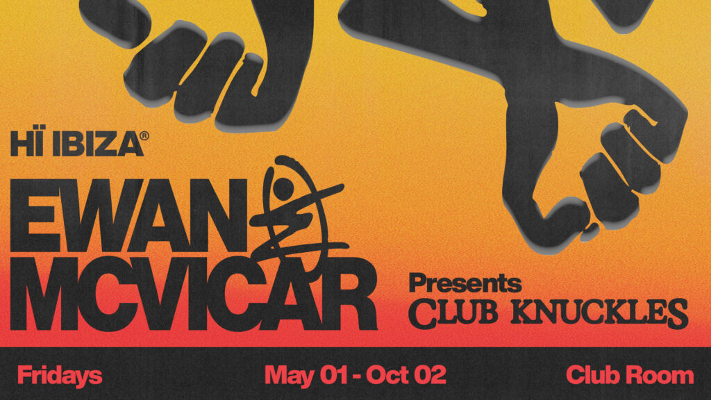 En 2026 aterriza en Hï Ibiza con Ewan McVicar Presents Club Knuckles, su primera residencia de temporada completa en la isla. Cada viernes, durante 23 semanas consecutivas del 1 de mayo al 2 de octubre, McVicar tomará el control de la sala Club, llevando su inconfundible mezcla de house, groove y espíritu rave al corazón del verano ibicenco y consolidando aún más su posición como una de las figuras más excitantes del house contemporáneo.