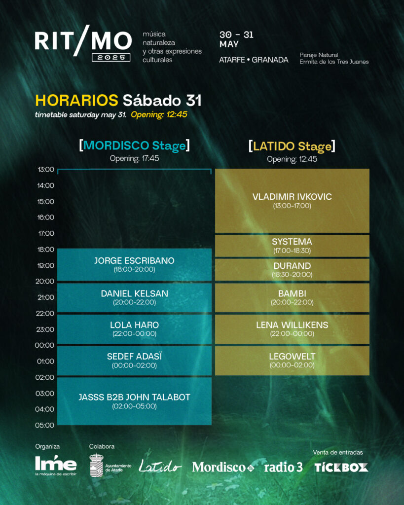 RIT/MO, el festival de música electrónica enclavado en plena naturaleza a solo 15 minutos de Granada, publica hoy los horarios completos de su edición 2025, que tendrá lugar los días 30 y 31 de mayo en el incomparable entorno natural de la Ermita de los Tres Juanes, en Sierra Elvira.