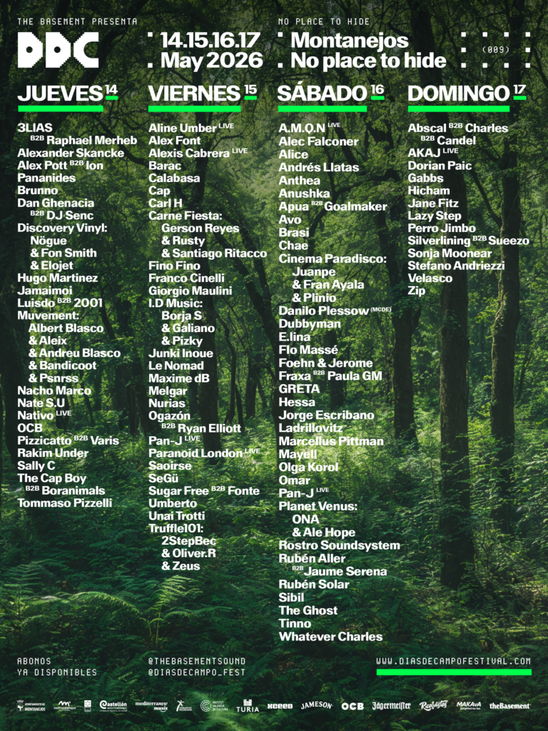 Días de Campo regresa a Montanejos del 14 al 17 de mayo y lo hace con más de 120 artistas, referentes internacionales, nacionales y locales de la música electrónica. Una programación amplia en estilos, construida con un mismo criterio: calidad, coherencia y experiencia en pista. Estos 120 artistas estarán repartidos en seis escenarios, XCEED Main Stage, La Plaza, Jameson Stage, El Tipi by Turia, Termas Downtempo y OCB Stage.
