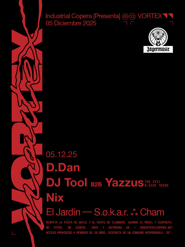 Jägermusic se fundamenta en la creación de oportunidades para artistas emergentes, a los que se les ofrece un apoyo integral que se materializa de diversas formas, abarcando desde la promoción, hasta el soporte económico para la realización de proyectos creativos. En esta ocasión se une a VORTEX para ofrecernos un evento que encaja a la perfección con la filosofía de Industrial Copera