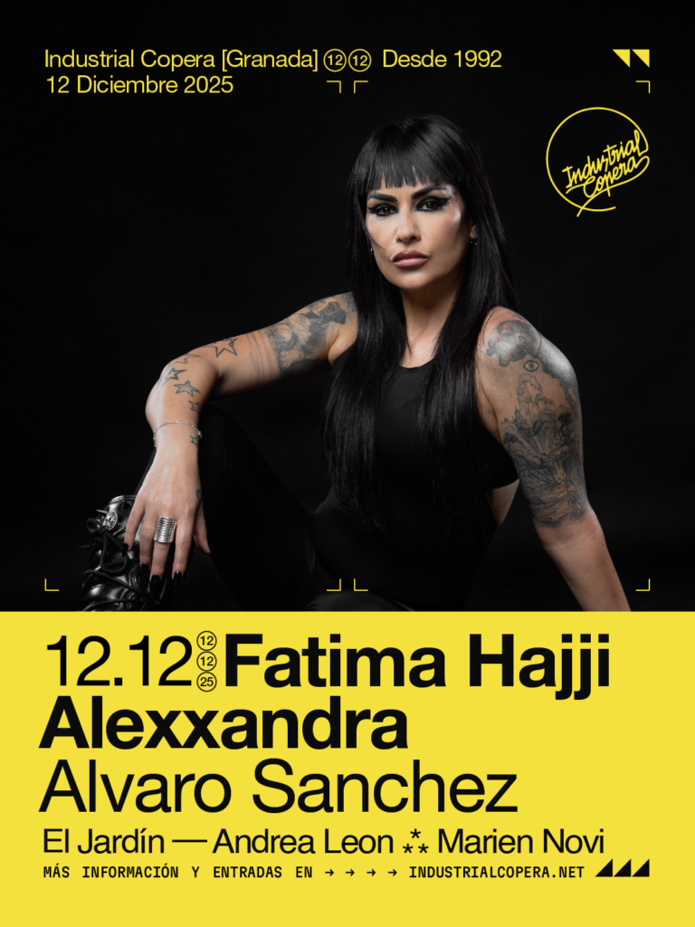 Fatima Hajji aterriza en Industrial Copera en uno de sus mejores momentos de su carrera. Su estilo duro y contundente rompe barreras internacionalmente, y se ha convertido por méritos propios en una de sus grandes referentes del género con una técnica exquisita a los platos. Fátima es una artista que ha sabido crear una carrera sin complejos y que ha demostrado que pocos artistas consiguen transmitir tanto como ella.