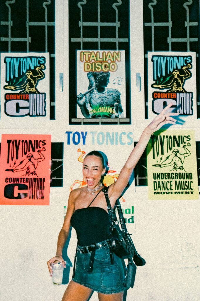 La historia comienza en la pista de baile, sumergiendo al espectador en el corazón de la comunidad de Toy Tonics, llena de estudiantes de arte, diseñadores, jóvenes creativos y jóvenes amantes de la moda DIY, el tipo de público que refleja la estética de la marca. Con sus obras de arte lúdicas y su ropa urbana, Toy Tonics se ha convertido en un imán para el mundo creativo más allá de la cultura club, organizando eventos artísticos emergentes en Barcelona, Milán y Berlín; colaborando con LN-CC durante la Semana de la Moda de Londres; exponiendo en Villa Stuck (Múnich) y Palais de Tokyo (París); y, desde 2023, organizando la fiesta oficial de la Semana del Diseño de Milán, que atrae a miles de asistentes.
