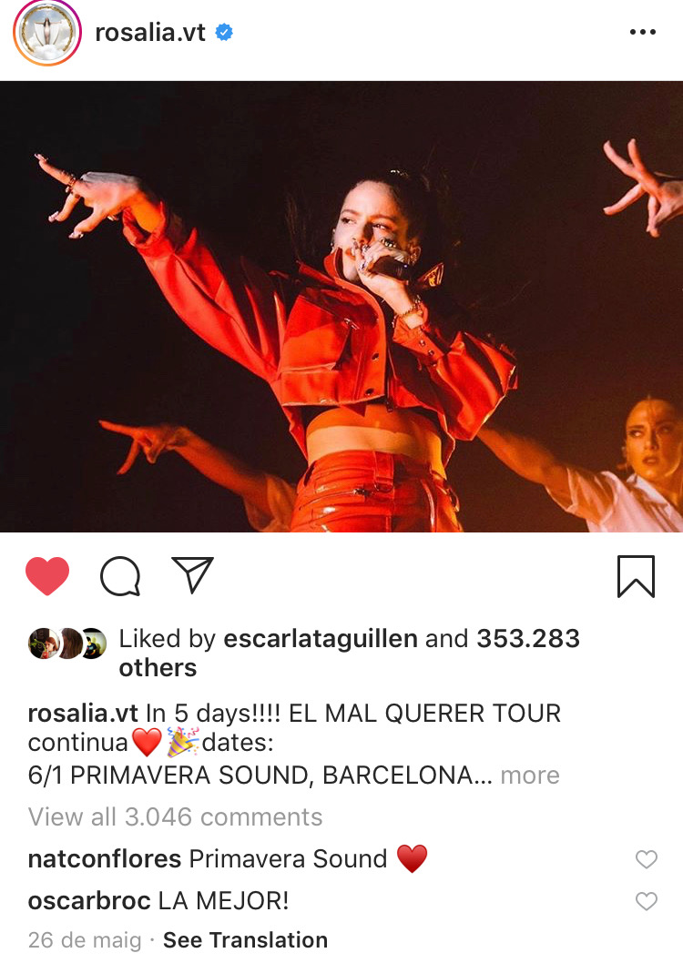 Sería una pena que se suspendiera el Sónar porque me he preparado a fondo para un campo de batalla urban. Mi lavado de imagen ha sido concienzudo. Llevo un par de meses soltando ‘comments’ exaltados en el Instagram de Rosalía. He bombardeado sus posts con elogios encendidos al más puro estilo fandom de la Pantoja. “GUAPA”, “CONTIGO LA VIDA ES COLOR DE ROSA”, “TU PUEDES CON TO-DO”. La táctica ha funcionado. Mis amigos indies puretas me han visto interactuar con ella en Instagram, han catado de primera mano mi rápida adaptación a los nuevos tiempos. Ahora, me consideran más apto que nunca para pasar la tarde en el SonarXS… Aunque sus hijos escuchen la misma música que yo.