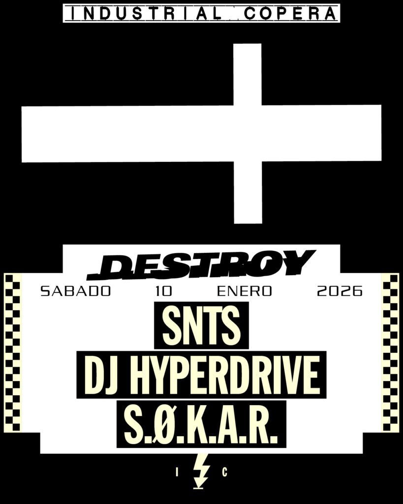 Contundencia, sobriedad, convicción, resolución y energía en estado puro. Estos son algunos de los atributos que ofrece DESTROY, un concepto electrónico que lleva el sonido al límite. Encabezando el cartel tendremos a SNTS, DJ y productor cuyo origen, al igual que su identidad, se desconoce, se ha erigido como uno de los artistas más demandados y originales de la escena techno internacional gracias tanto a su puesta en escena, enmascarado y encapuchado, de riguroso negro, como a un sonido oscuro e intenso, que bebe tanto del dark ambient como del techno más profundo, minimalista y contundente.