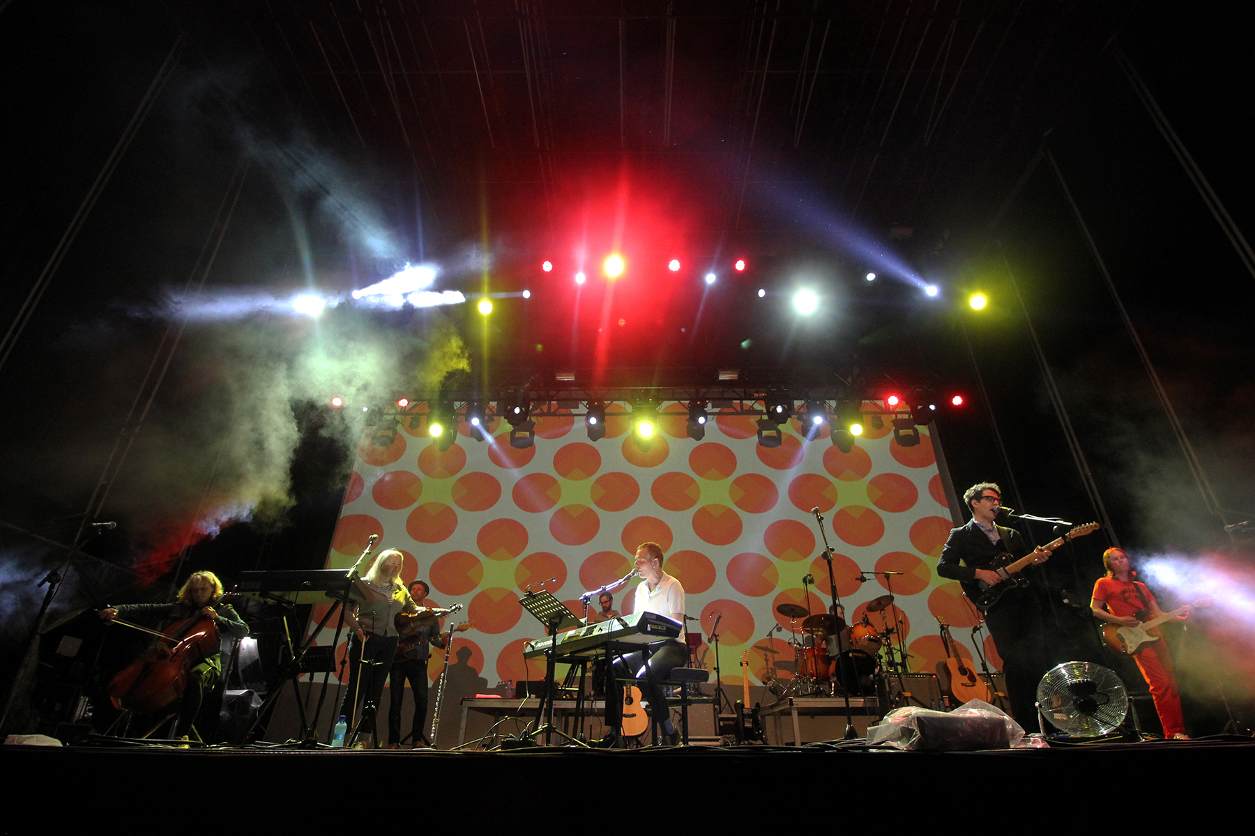 Los últimos coletazos de tormenta dejaron imágenes propias de Glastonbury, pero a partir de las 20h nos dio tregua. De ese modo, pudimos asistir al concierto de unos Belle & Sebastian muy animados con el mejor de los humores.