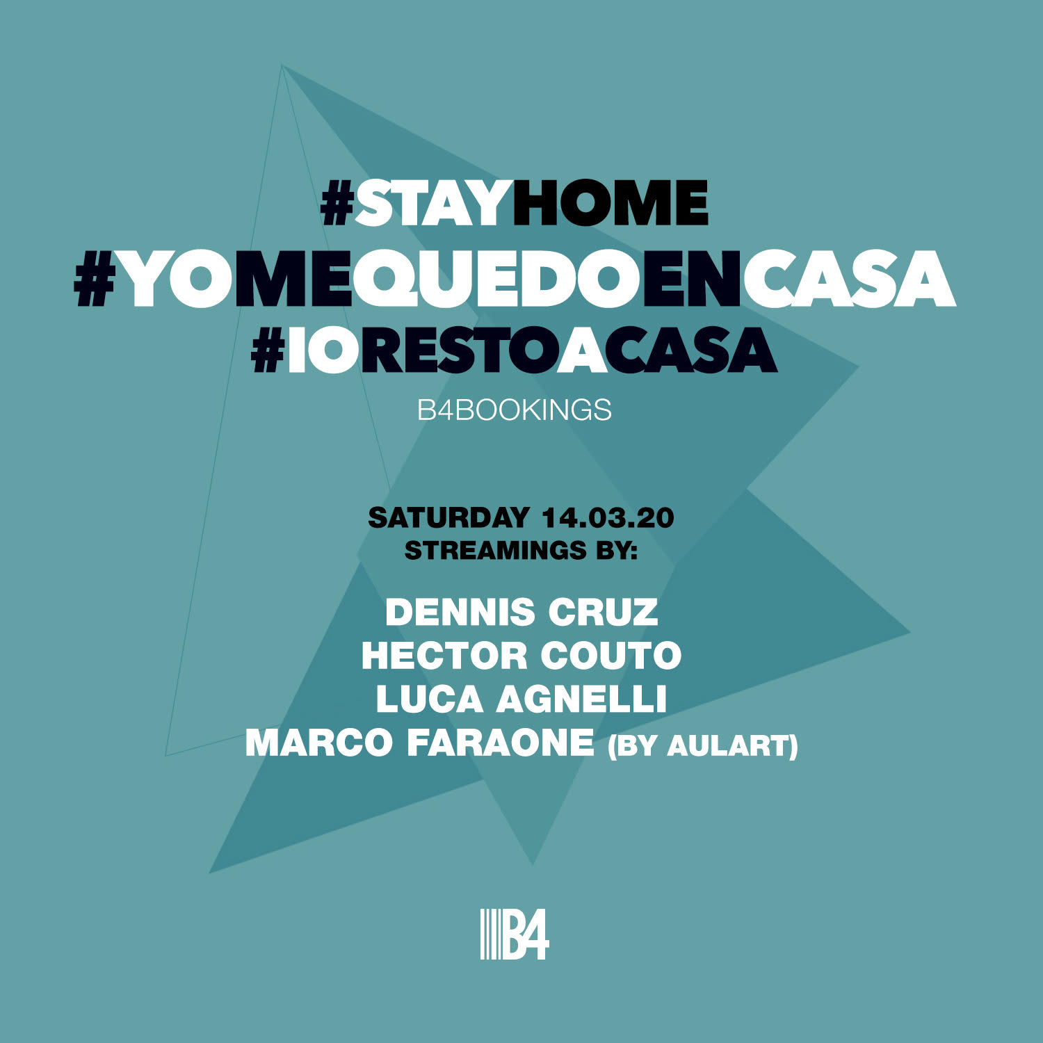 Son tiempos difíciles, pero vendrán mejores. Y, mientras, los artistas de la agencia barcelonesa B4bookings han decidido sumarse a la iniciativa #YoMeQuedoEnCasa con una serie de DJ sets en streaming que tendrán lugar a partir de mañana sábado a las 19.30 horas.