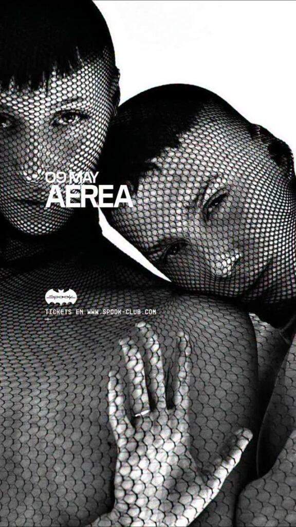 En la Main de Spook disfrutaremos del live de AEREA, un dúo de DJs y productores madrileños formado en 2021, conocido por su estilo «techno emocional» que fusiona trance, hardgroove y schranz con voces propias. Destacan por sus directos, que combinan música electrónica profunda con una cuidada estética visual. Su propuesta artística se distingue por un enfoque minimalista pero profundo, tanto en su música como en sus vídeos, buscando crear experiencias completas. Les escoltarán en la sala principal de Spook artistas de la talla de Felicie, Boytek, Finalversion3 y Stroc.