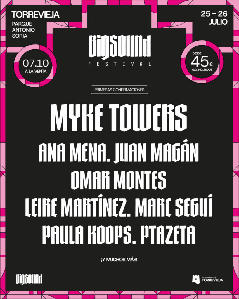 El fenómeno BIGSOUND suma una nueva parada a su mapa de ciudades anfitrionas y desembarca en la Costa Blanca. Su primera edición en Torrevieja, que se celebrará los días 25 y 26 de julio de 2026 en el Parque Antonio Soria, presenta un avance de cartel encabezado por Myke Towers, Ana Mena, Juan Magán, Omar Montes, Leire Martínez, Ptazeta, Marc Seguí y Paula Koops: una muestra del talento, la energía y la diversidad que definen el espíritu del festival y consolidan a BIGSOUND como un referente de la música urbana y mainstream en Europa.