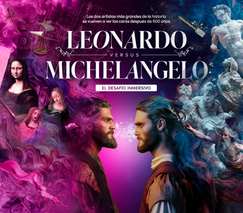 LEONARDO VS MICHELANGELO parte del desafío histórico que en el año 1503 enfrentó a ambos genios del Renacimiento, cuando se les encargó pintar un mural a cada uno en la Sala de los Quinientos del Palacio Viejo de Florencia.