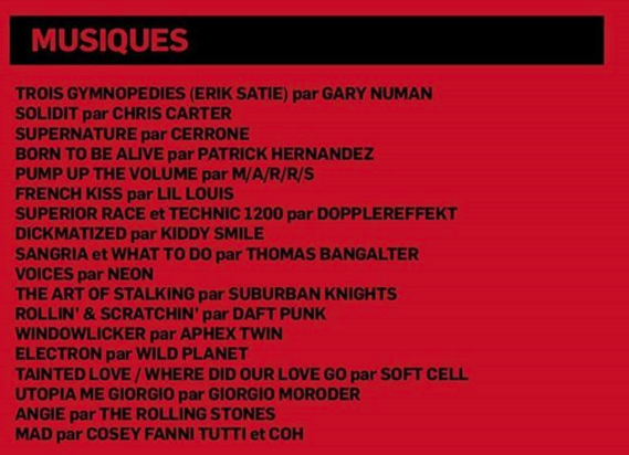 En la banda sonora también aparece su tema What to Do, así como el clásico de Daft Punk Rollin’ and Scratchin’ y otros himnos de la electrónica como el Windowlicker de Aphex Twin. Mira el listado completo de canciones más abajo.