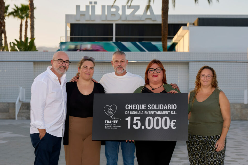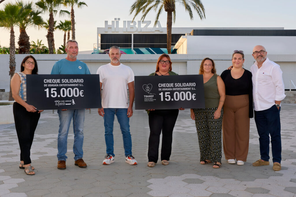 Yann Pissenem, fundador, propietario y CEO de Ushuaïa Entertainment, hizo entrega de dos cheques solidarios de 15.000 euros cada uno, por un importe total de 30.000 euros, destinados a TDAHEF (Asociación TDAH de Ibiza y Formentera) y ASPANOB (Asociación de Familias de Menores con Cáncer de las Islas Baleares).